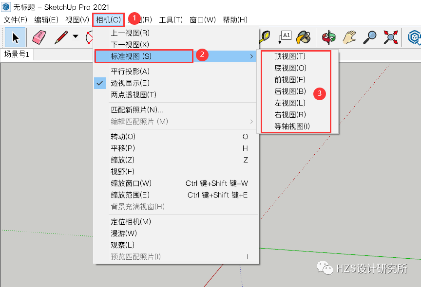 在菜单栏-选择相机-标准视图-顶视图等等,通过调整可以达到各种不同的视图去观察模型。同时也是为导出模型或画面的预先调整。