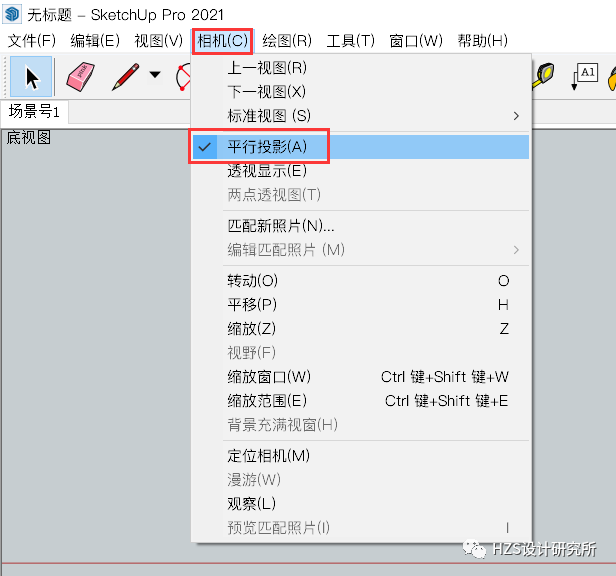 注意:要打开平行投影,以此来确保二维视口显示的正确!